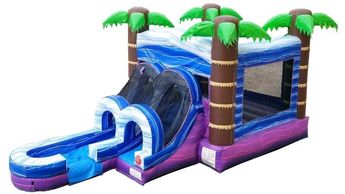 Product Description This Mega Purple Water Slide Bounce House Combo is the perfect addition to any backyard celebration. This combo is the Mega version of our current inventory. Kids and adults alike will have wet and wild fun on this Mega Purple Marble Bounce House Wet or Dry Slide Combo. Enclosed entrance helps keep track of how many children are inside the bouncy castle.