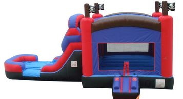 This is the inflatable bounce house for land lovers and sea dogs alike. Just as the name suggests, the Pirate Bounce House Wet or Dry Slide Combo can be used with the misting hose turned on for a wet slide, or with the hose left off for a regular slide experience.